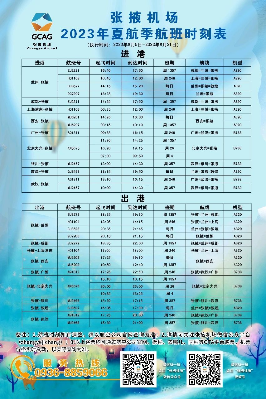 您當前的位置 : 中國張掖網 >> 企業 注意!蘭州=張掖=敦煌航線時刻調整 來源:張掖市融媒體中心 0 人參與互動 2023年08月01日 17:07