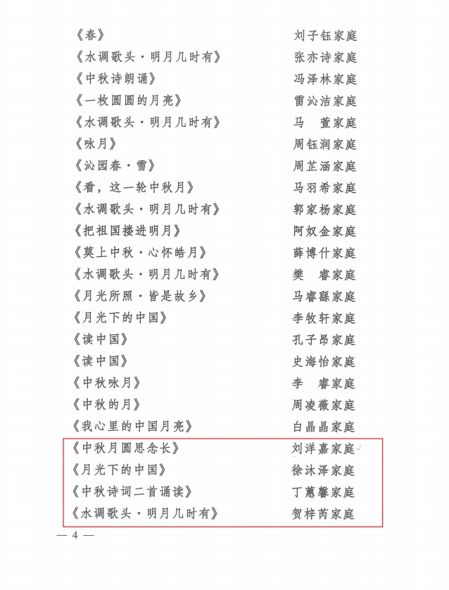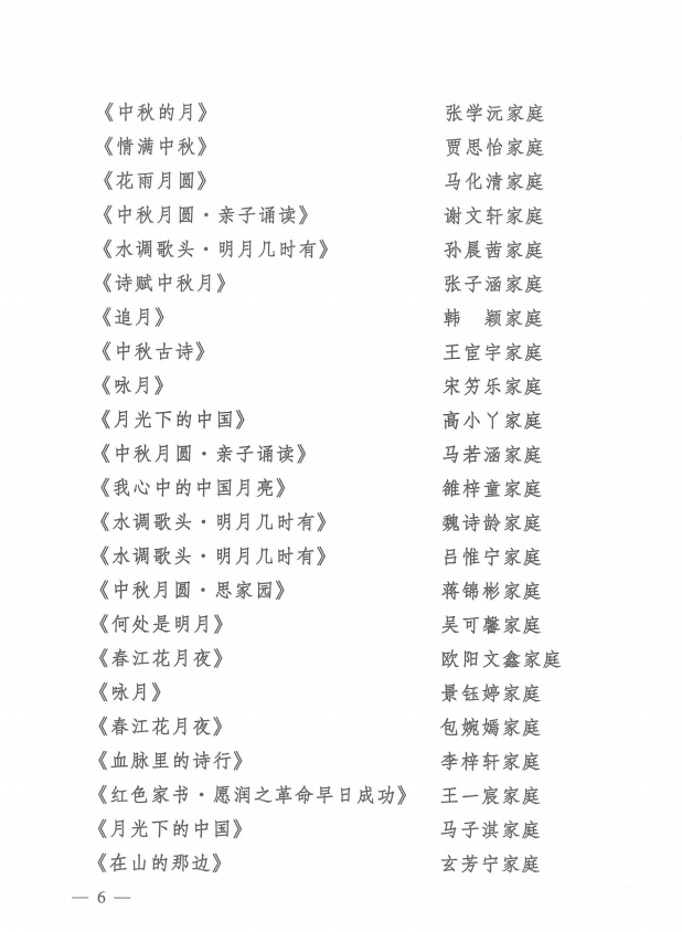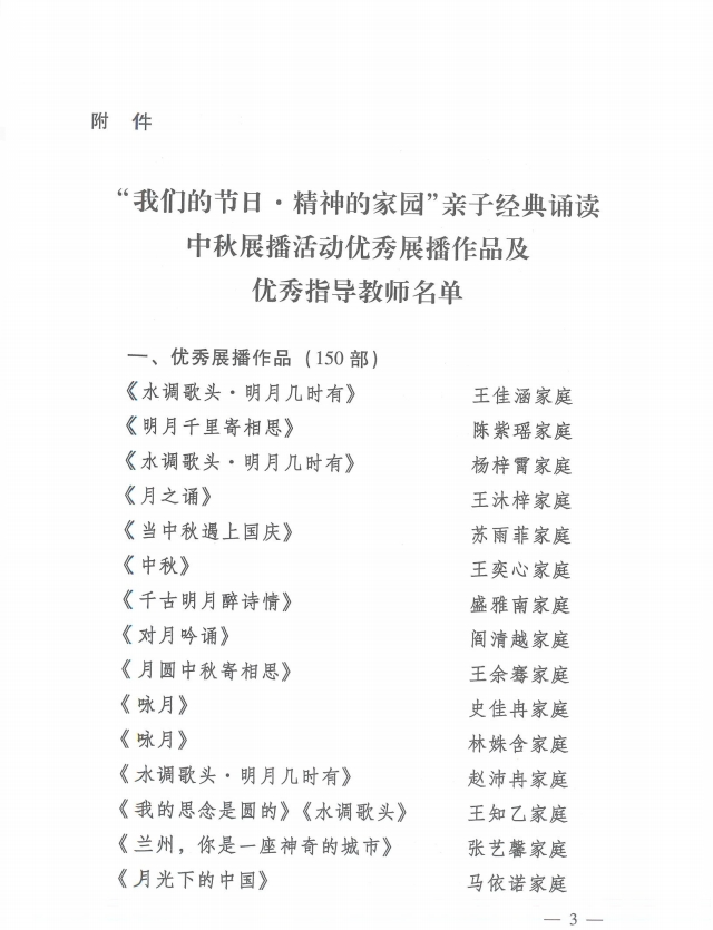 附件:“我們的節日?精神的家園”親子經典誦讀中秋展播活動優秀展播作品及優秀指導教師名單