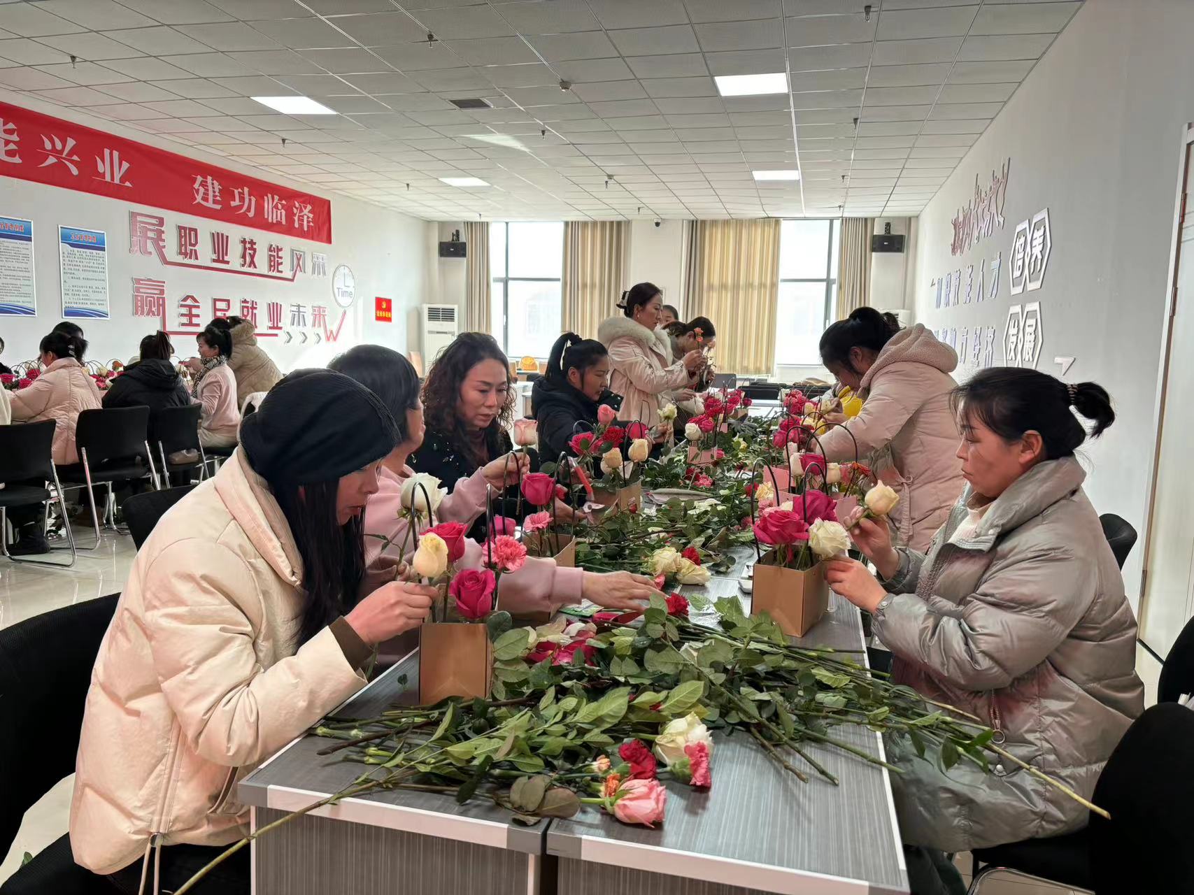 中國張掖網臨澤訊 春意盎然,“香”約三月。為慶祝“三八”國際勞動婦女節,豐富廣大女職工的文化生活,2月29日下午,沙河鎮惠民社區組織全體女職工在成君職業技能培訓學校開展了“花香溢三月 巾幗綻芳華”插花活動。