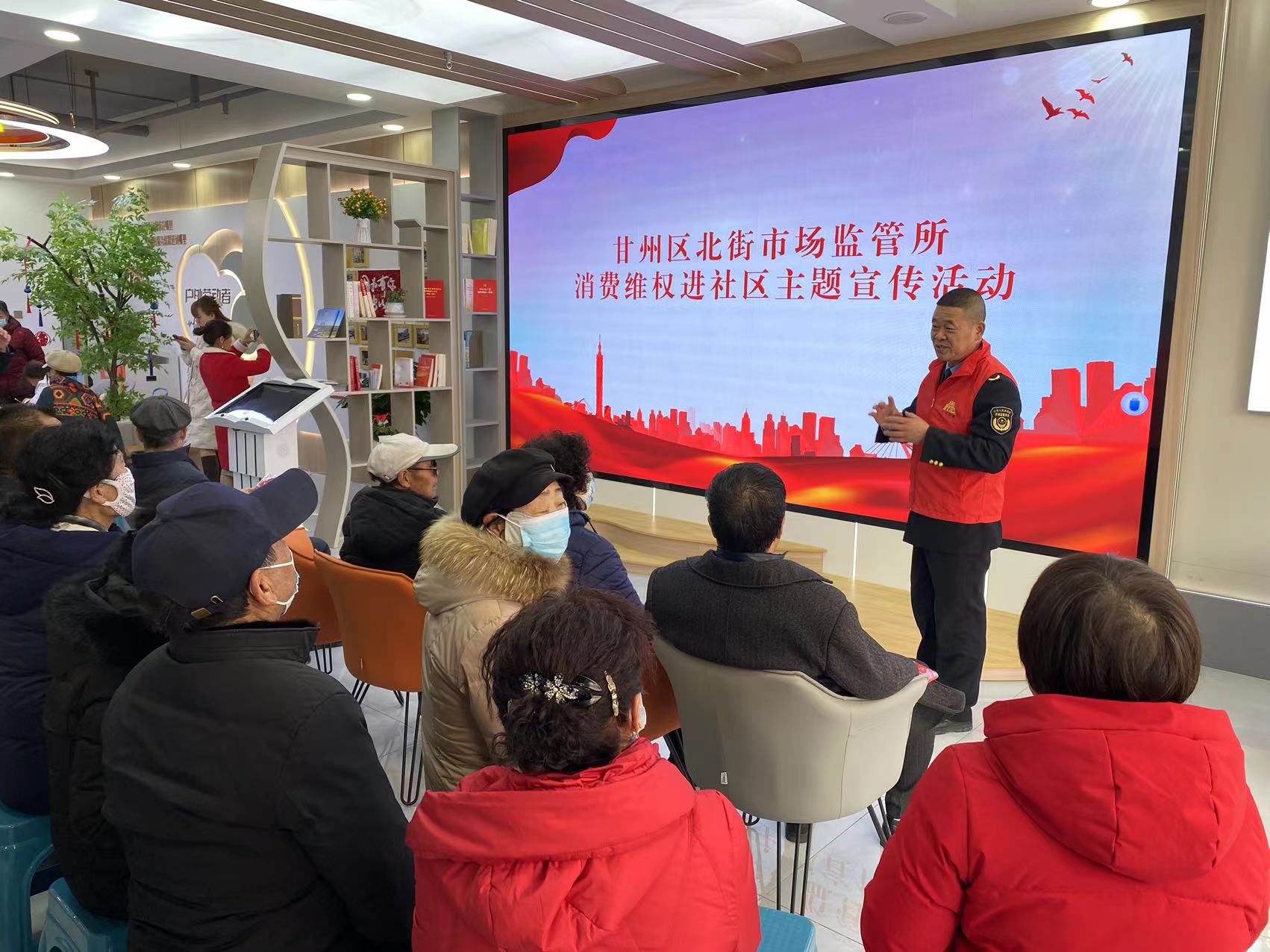 中國張掖網甘州訊 為將最新、最熱的消費維權知識送到社區居民身邊,幫助社區居民特別是老年人提高自我防范能力。在“3?15”國際消費者權益保護日來臨之際,甘州區北街市場監督管理所結合“主題黨日”活動,開展“維權普法進社區,志愿服務暖民心”主題宣講活動。