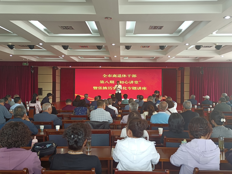 中國張掖網訊 近日,張掖市委老干部局舉辦全市離退休干部第八期“初心講堂”暨張掖歷史文化專題講座??h區及市直部門單位部分離退休干部,市老年大學學員代表和市委老干部局領導班子成員、全體干部職工160多人參加。