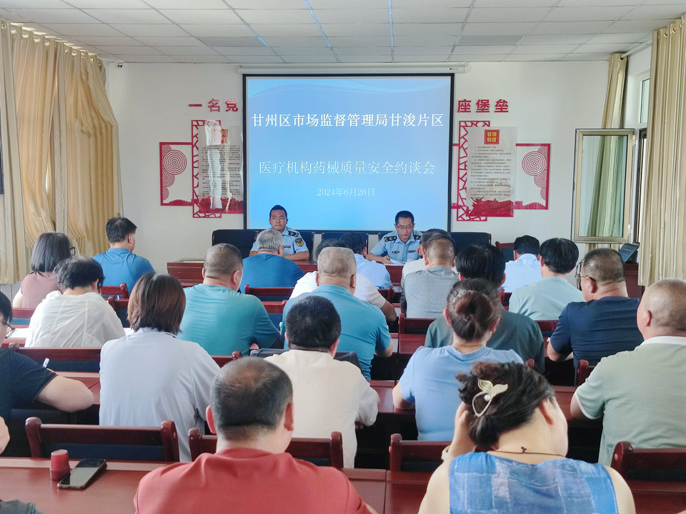 中國張掖網(wǎng)甘州訊 為進一步規(guī)范醫(yī)療機構(gòu)藥品藥械經(jīng)營使用行為,提升醫(yī)療機構(gòu)藥品藥械質(zhì)量管理水平,有效預防和規(guī)避醫(yī)療機構(gòu)在藥品、醫(yī)療器械使用中的風險隱患,保障人民群眾用藥安全。6月26日,甘州區(qū)市場監(jiān)管局甘浚片區(qū)組織召開醫(yī)療機構(gòu)負責人約談會,轄區(qū)內(nèi)各醫(yī)療機構(gòu)共計30余人出席了會議。