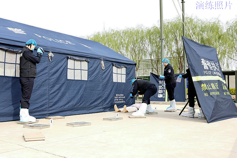 圖為:法醫、痕跡、電子物證等專業領域的參賽選手開展現場保護、物證固定提取等一系列工作。