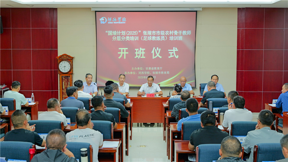 中國張掖網(wǎng)訊 近日,由河西學(xué)院、市教育局承辦的“國培計劃(2025)”張掖市市級農(nóng)村骨干教師分層分類培訓(xùn)(義務(wù)教育足球教練員)培訓(xùn)班開班儀式在河西學(xué)院河西講堂舉行。